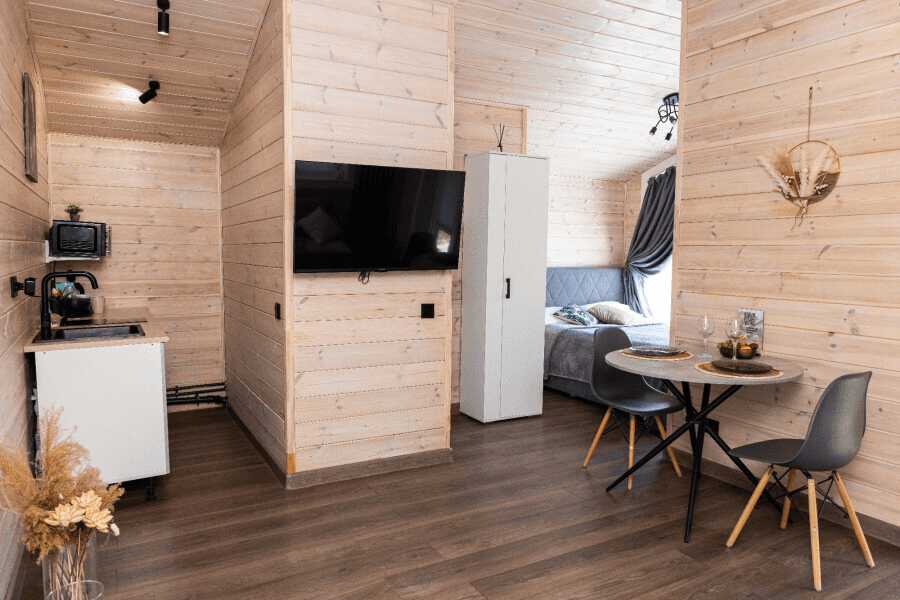 In each cabin, you’ll find not only comfort and coziness, but also the opportunity to spend your time in a meaningful way — alone with nature, with friends, or staying active